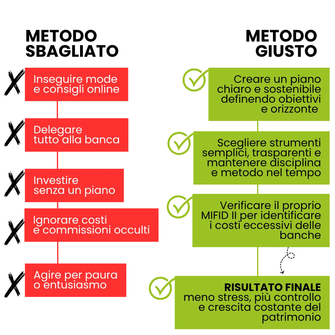 Questo metodo è pensato per chi desidera imparare a investire in modo consapevole e strutturato, senza dipendere dalle mode del momento o dalle proposte commerciali di banche e promotori.
